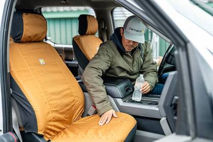 The reasons you wear Carhartt to work are the same reasons you want Carhartt protecting your car seats. This seat cover creates a rugged and reliable first line of defense against rips, tears, spills, stains, dirt, and grime.